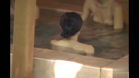 露天風呂でM字おしっこ