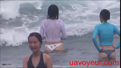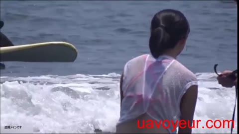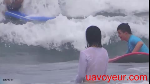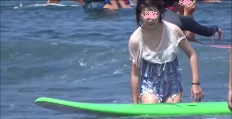 海で透け透け胸チラ風乳首前半