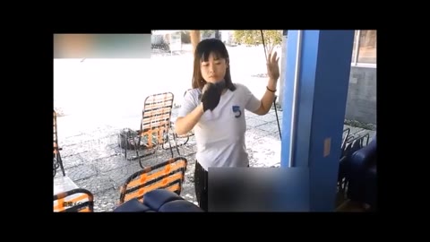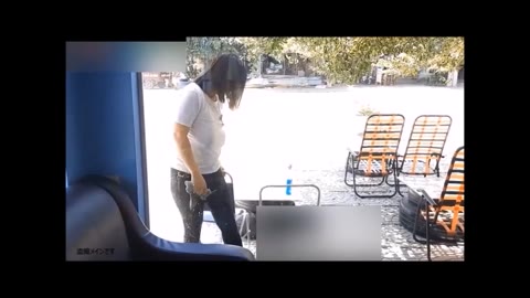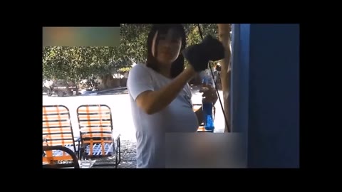 ノーブラ巨乳窓拭きバイト透け