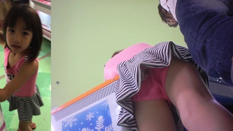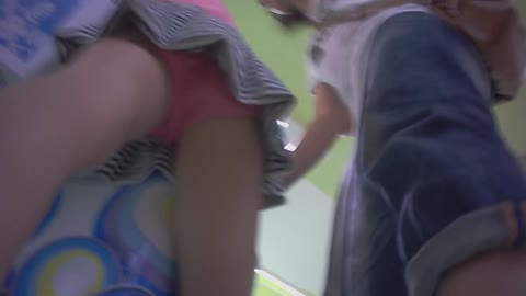 ミニマムJ○無防備な大開脚M字でパンツが丸見え!小さな身体で危なエロいお顔もパンチラもたっぷり盗撮