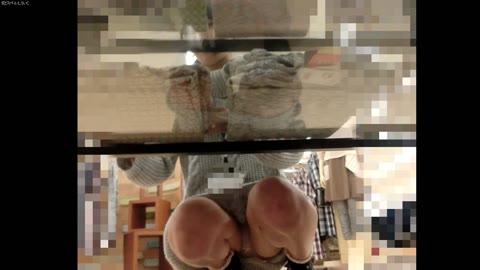 食い込み股間から胸まで丸見え!がに股M字にめくりまでも!可愛い顔して過激なTバック店員の半裸パンチラたっぷり盗撮