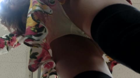 パンブラ丸見え!超絶可愛い笑顔で接客中に晒したほぼ下着姿の過激パンチラたっぷり盗撮