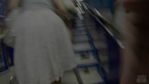 ワンピが透けて浮き出るTライン!さらにノーブラ!?エロカワ店員のぷり尻に食い込む卑猥過ぎパンチラたっぷり盗撮