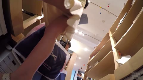 可愛いロリ顔!小ぶりな生乳!食い込むパンツ!美肌店員さんのぷり尻食い込みパンチラたっぷり盗撮