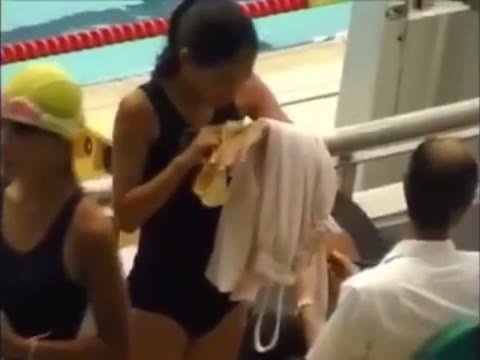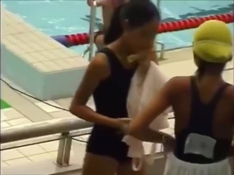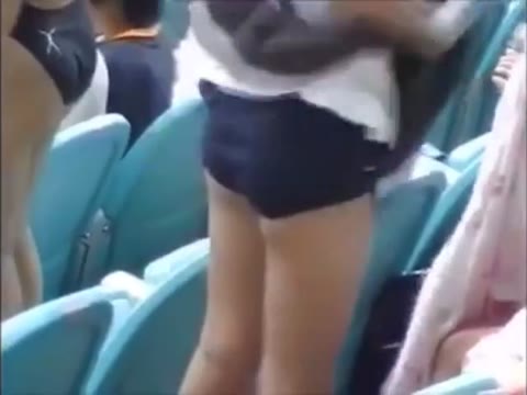 水泳大会のスク水を観客席で着替える!!